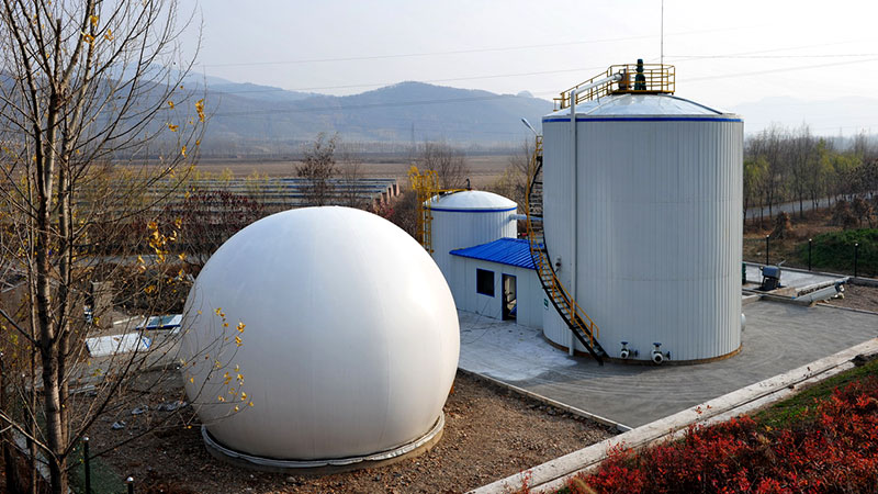采用“水解预处理+CSTR发酵+太阳能加热”的工艺路线,解决了北方沼气工程因冬季气温低导致的产气量低问题,降低了运行成本,沼气净化后供给周边450户农户炊事使用,年处理周边养殖场猪粪污共6570t,年生产沼气约1.46×105m3。